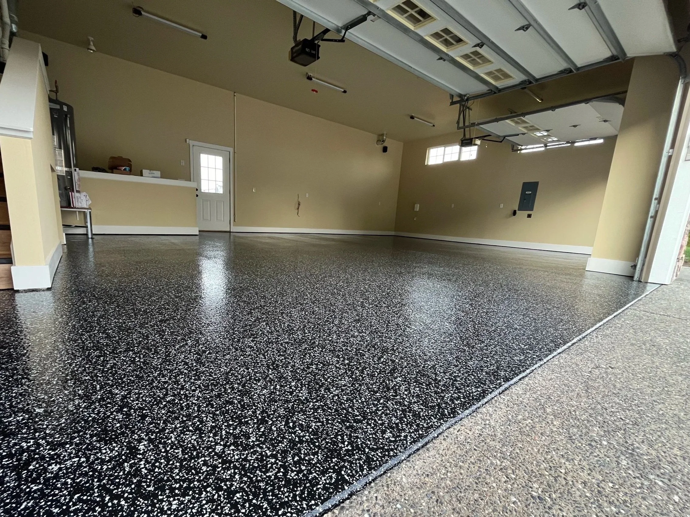 Our flake coating systems offer a durable, slip-resistant surface that create a vibrant, decorative appeal. These systems are perfect for garages, workshops, and commercial spaces. Choose from our stock flake blends, or build your own custom flake mix to make your space unique to you.