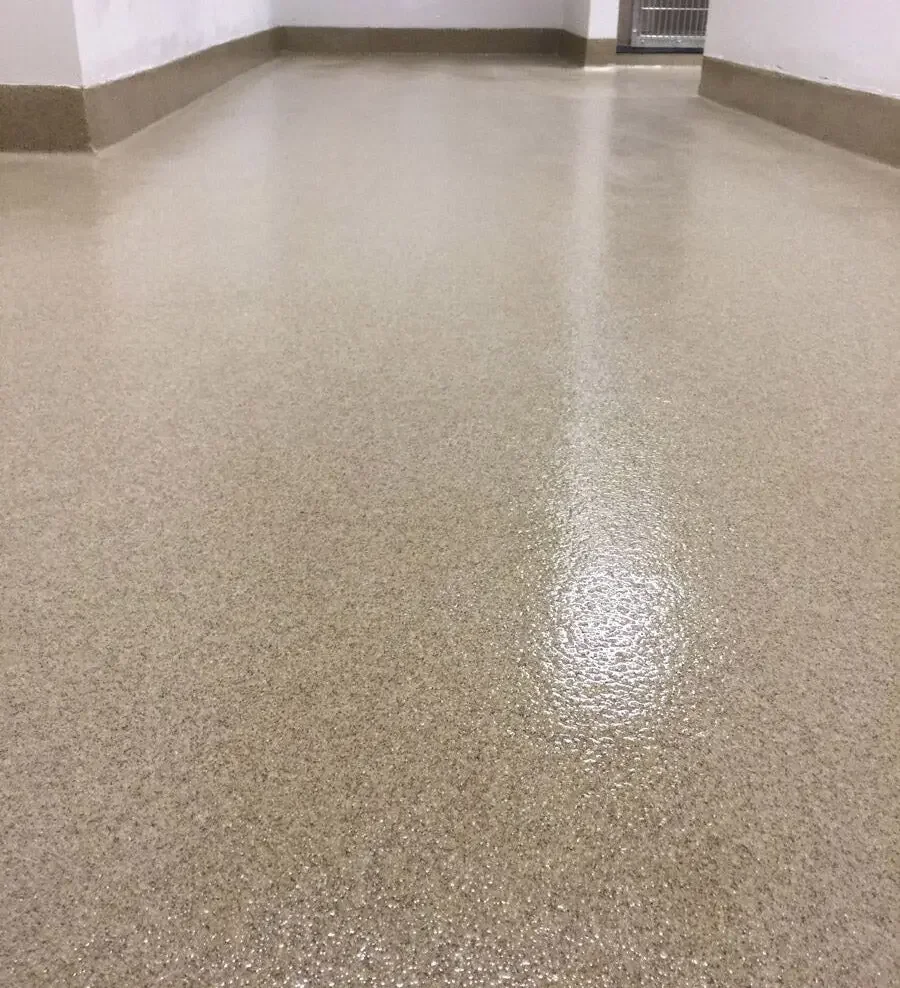 These use pigmented epoxy, urethane, or polyaspartic resins applied in a uniform color.